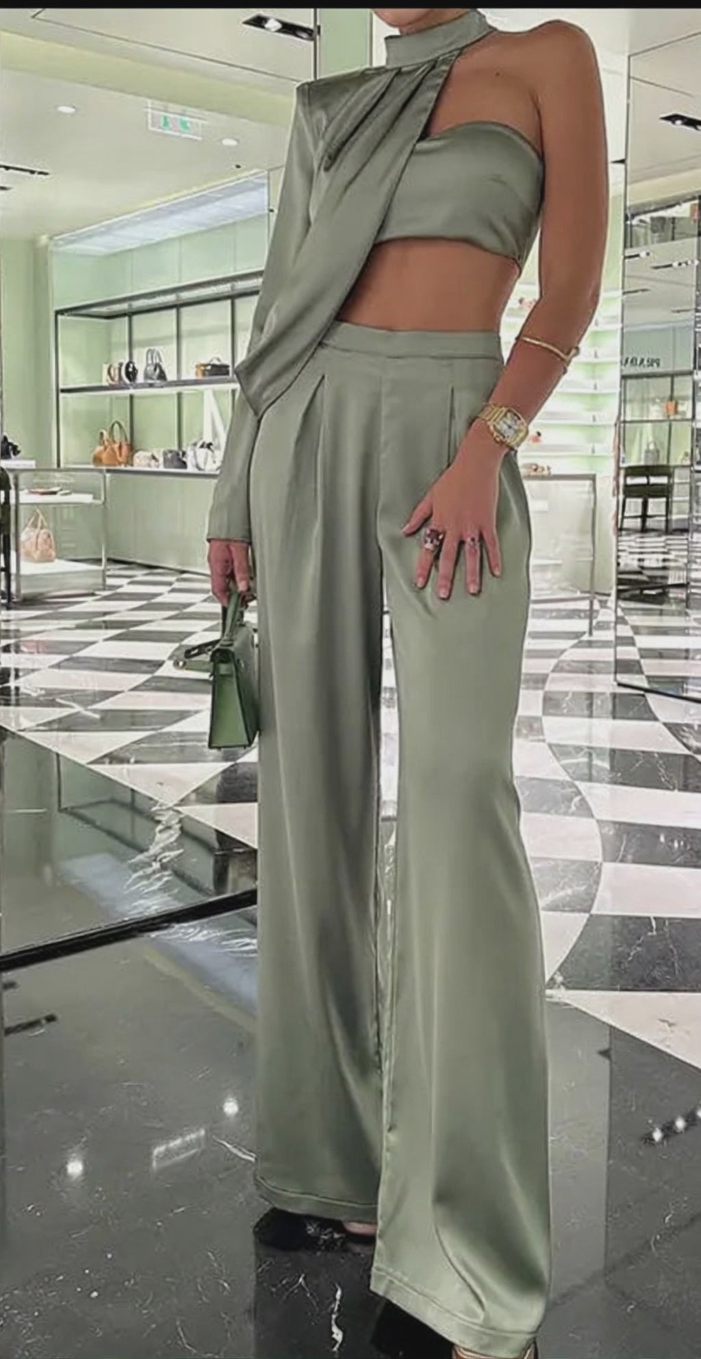 Crafted from high-quality polyester, this set offers a lightweight feel while ensuring durability. The hollowing detail adds a unique touch, making it perfect for both casual outings and more formal occasions. Available in a rich green color, this ensemble is versatile enough to pair with your favorite accessories.