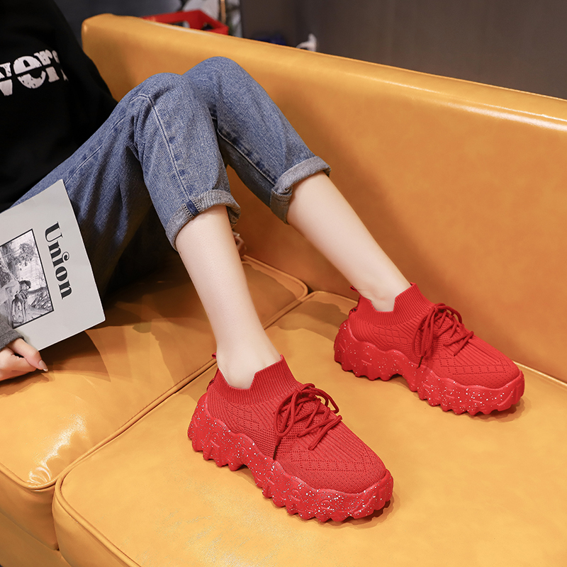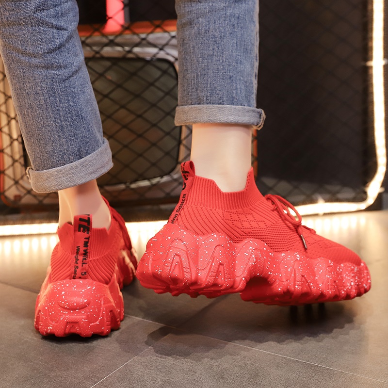 Red Women's Breathable Platform Sneakers (Casual & Stylish)