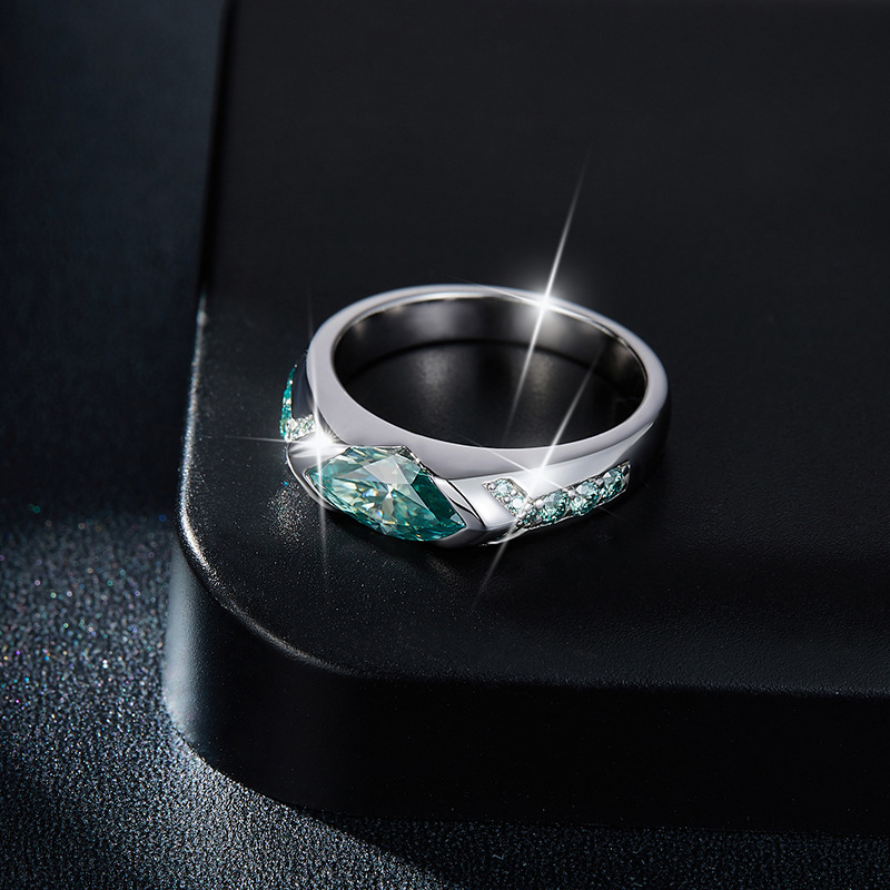Förhöj din smyckessamling med den blågröna mosonitringen – ett smycke som sömlöst blandar modern elegans med tidlös charm. Missa inte chansen att äga denna utsökta ring!